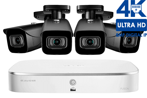 Featuring industry-leading 4K (8 megapixel) resolution recording, this security camera system from Lorex will bring a whole new level of detail to your monitoring. It includes an 8-channel Fusion Series Network Video Recorder (NVR) and four 4K IP bullet security cameras. Whether you are looking to protect your home or small business, this powerful security camera system will help you secure the things that matter most.