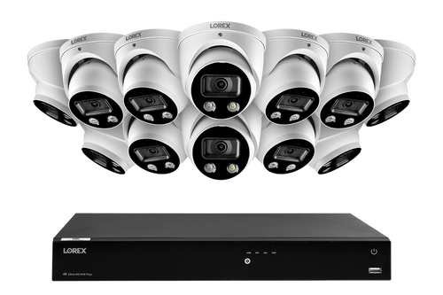 With our latest 16-channel Fusion Series NVR and 4K Smart Deterrence cameras, this security camera system will provide you with high quality recordings and the smartest features to protect your property. Features such as Smart Motion Detection Plus, Active Deterrence LED lights and siren, and two-way talk audio are designed to stop potential events before they happen. The NVR also includes a 3TB hard drive for private local recording with no monthly fees and is easily connected to our Lorex Home App for easy remote viewing and motion notifications. As part of the Lorex Fusion™ collection, the NVR can accommodate up to two Wi-Fi cameras on open channels.